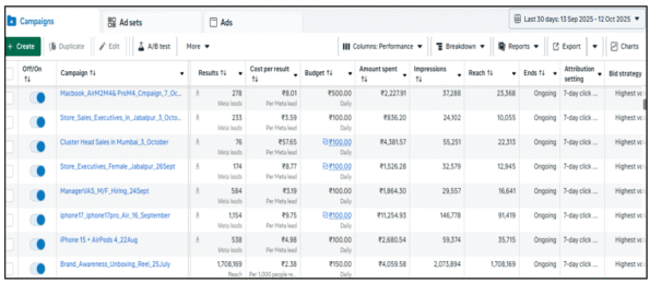 The Inext Store is an Apple Authorised Reseller in India offering a range of Apple products including iPhones, MacBooks, iPads, and accessories. The campaign objective was to generate high-quality leads through Facebook and Instagram ads at a low cost per lead (₹2–₹5).